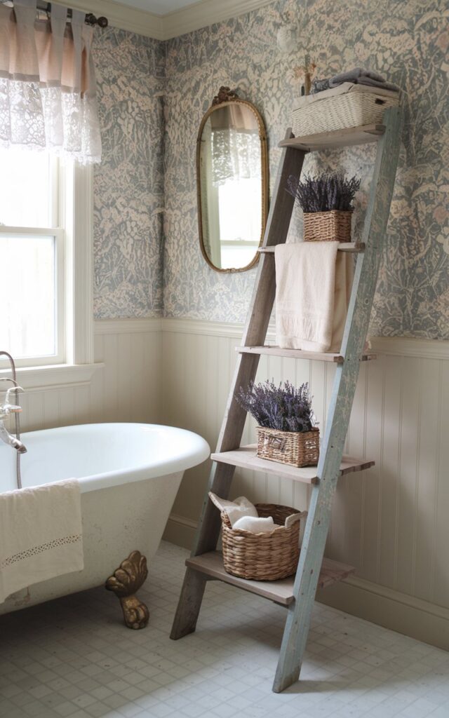 Got an old wooden ladder? Don’t toss it—lean it against the wall and call it a shelf. Instantly rustic, effortlessly cool. It’s giving flea market find meets interior designer flair.